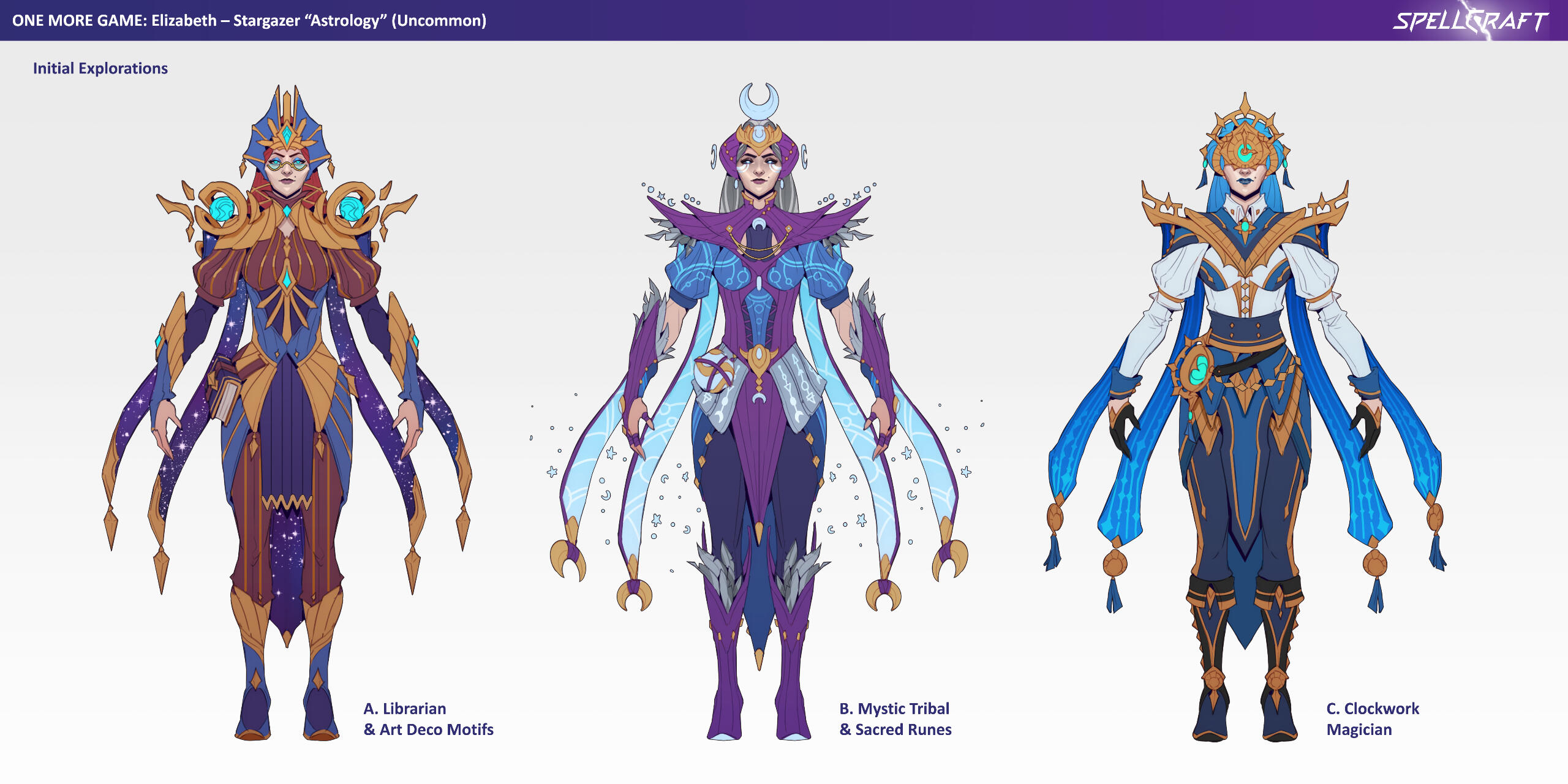 Thematic and hero skin development , exploring 'Godly' and 'Celestial' visuals