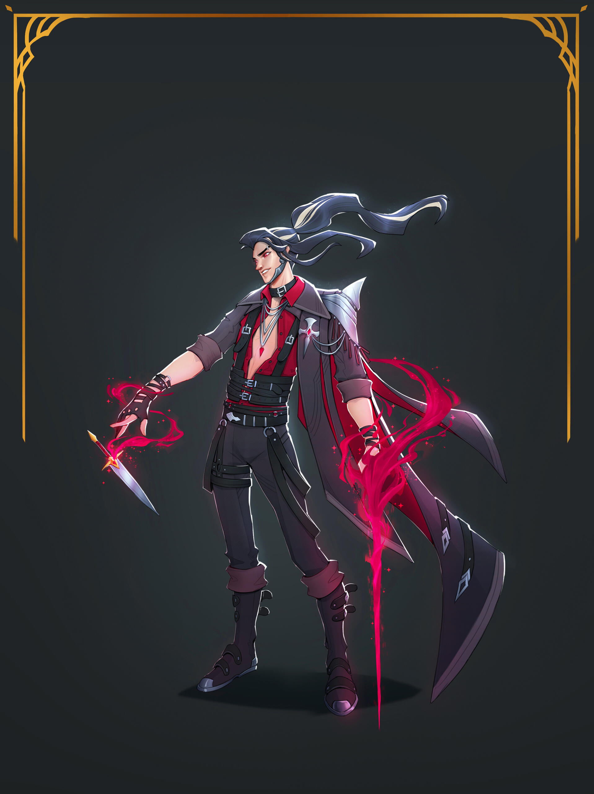 Viktor, from the Witching House of Crimsonne, adeptly wields blood magic and is able to manifest a rapier made from his own life energy. He is an arrogant, chaotic, slightly sadistic character who had to work extra hard to be as strong as he is, having been born with lower than average magic attunement. Blood magic is tied to and reflective of his sexuality.