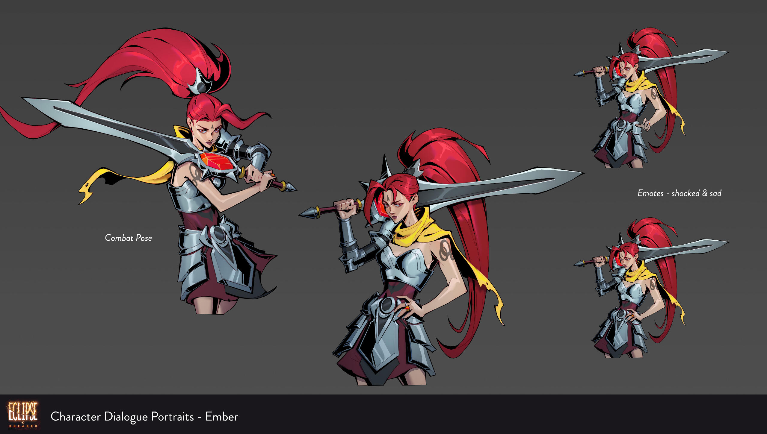 2D art created for JRPG-inspired indie game, Eclipse Breaker. Includes character dialogue portrait illustrations, currency & ability icons, and a complete UI refresh