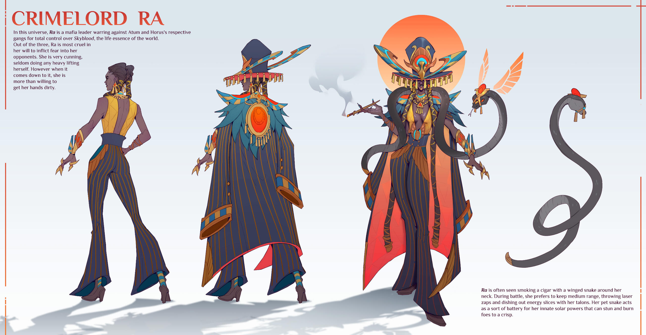 Reimagining of the Egyptian god Ra as a gender bent crime ring leader