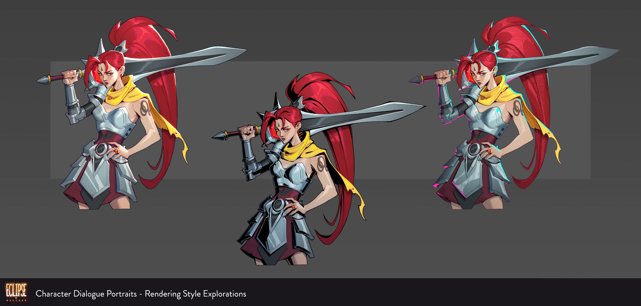 2D art created for JRPG-inspired indie game, Eclipse Breaker. Includes character dialogue portrait illustrations, currency & ability icons, and a complete UI refresh